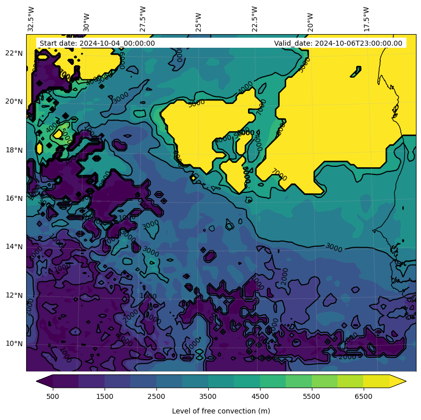 - Level of free convection (m)