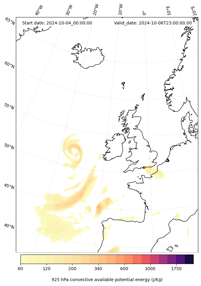 - Maximum CAPE (J/Kg)