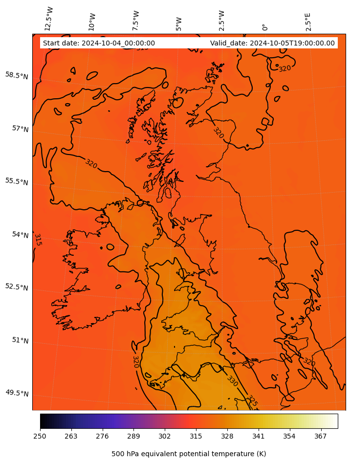 - Equivalent Potential Temperature (K)