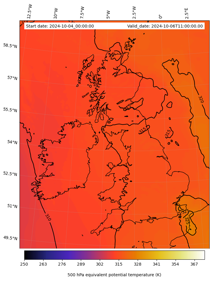 - Equivalent Potential Temperature (K)