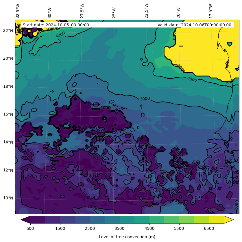 - Level of free convection (m)