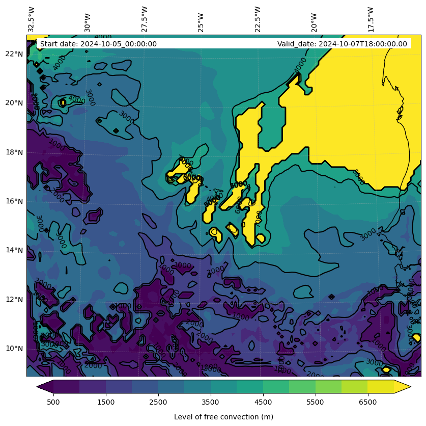 - Level of free convection (m)