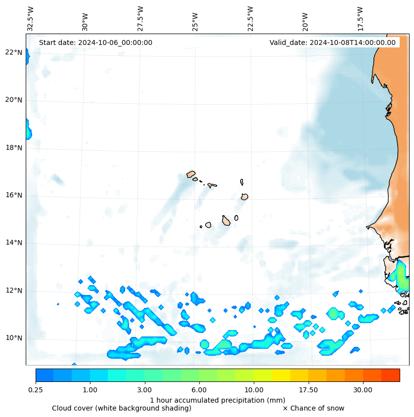 - Snow mixing ratio (g kg¯¹)