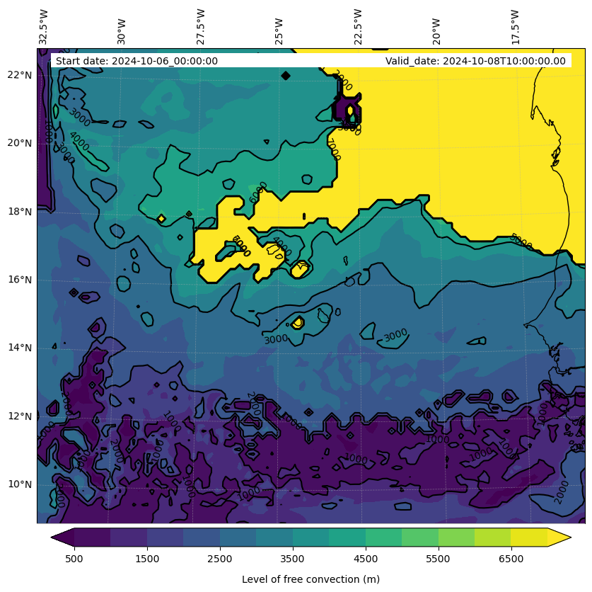 • Level of free convection (m)