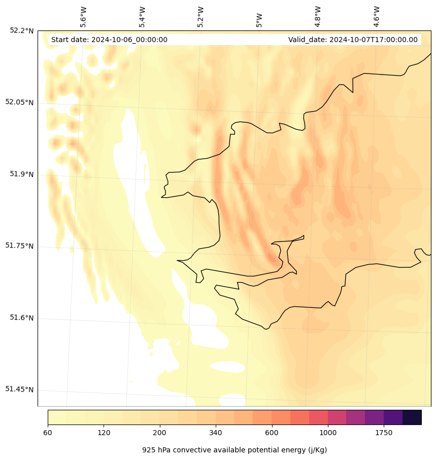 - Maximum CAPE (J/Kg)