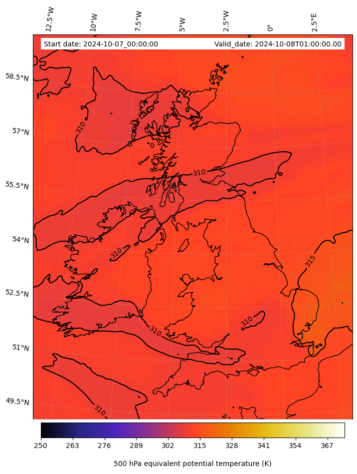 - Equivalent Potential Temperature (K)