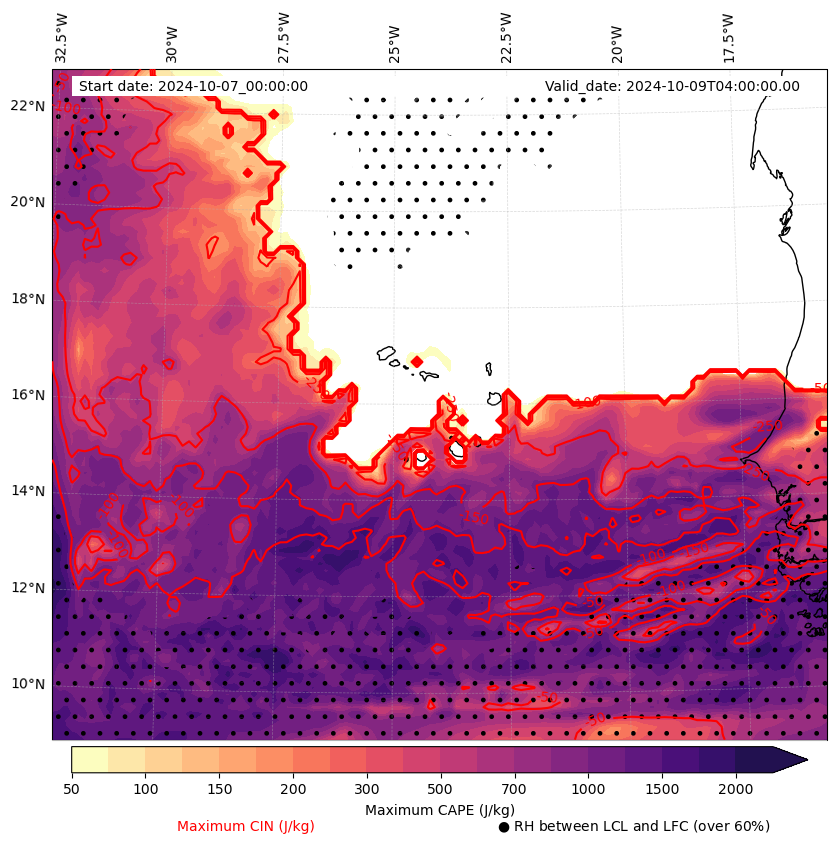 - Maximum CAPE (J/Kg)