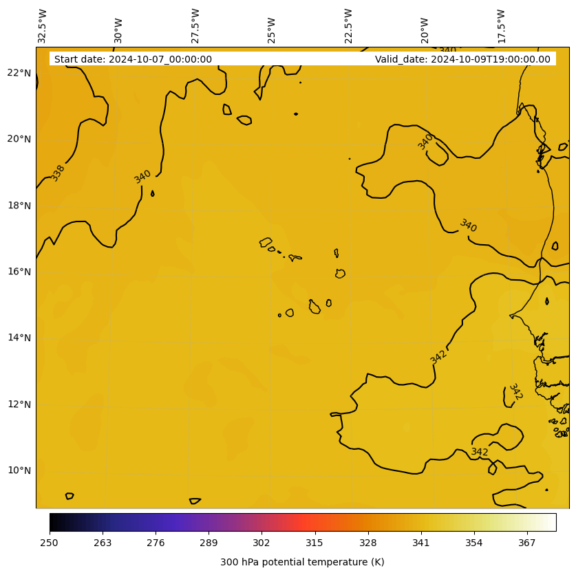 - Equivalent Potential Temperature (K)- 300 hPa