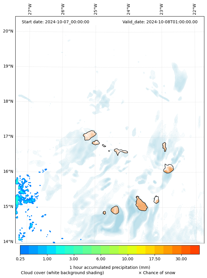 - Snow mixing ratio (g kg¯¹)