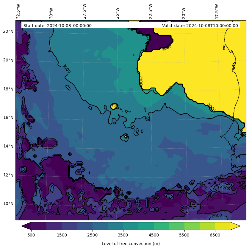 - Level of free convection (m)