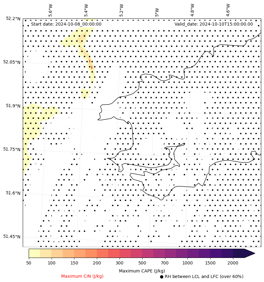 • Maximum CAPE (J/Kg)