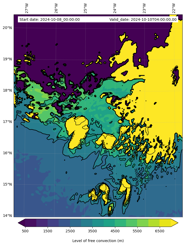- Level of free convection (m)