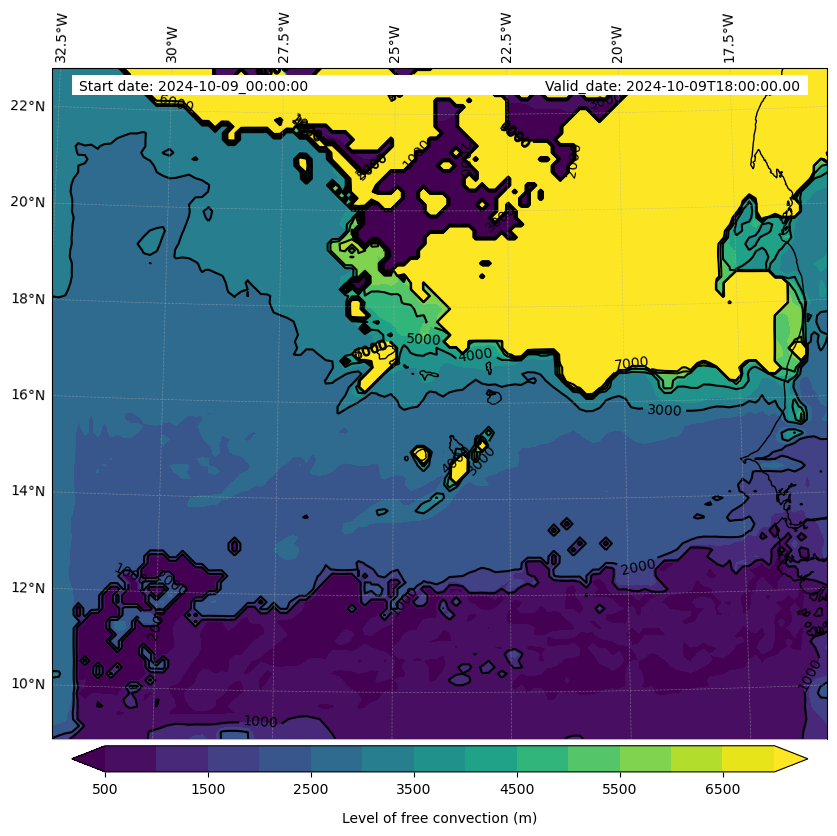 - Level of free convection (m)