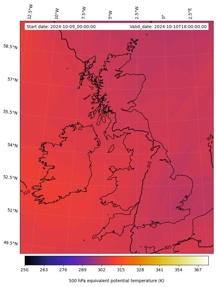- Equivalent Potential Temperature (K)