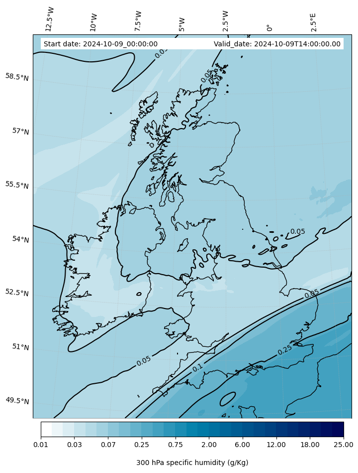 - Water vapor mixing ratio (g kg¯¹)- 300 hPa