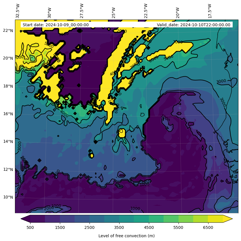 - Level of free convection (m)