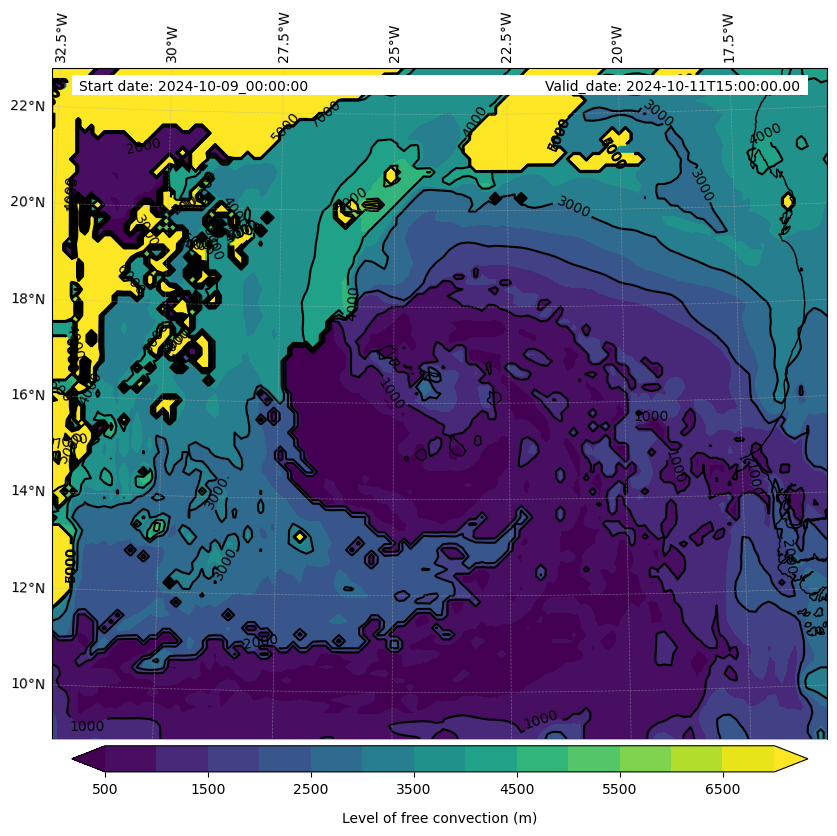 - Level of free convection (m)
