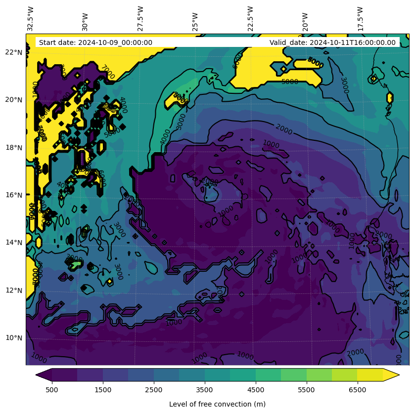- Level of free convection (m)