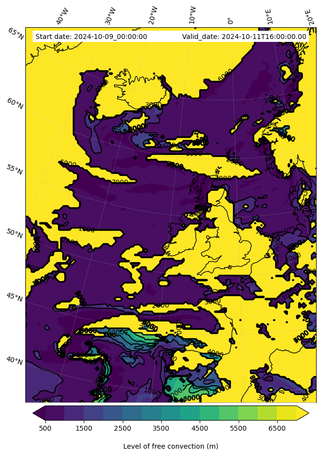 - Level of free convection (m)