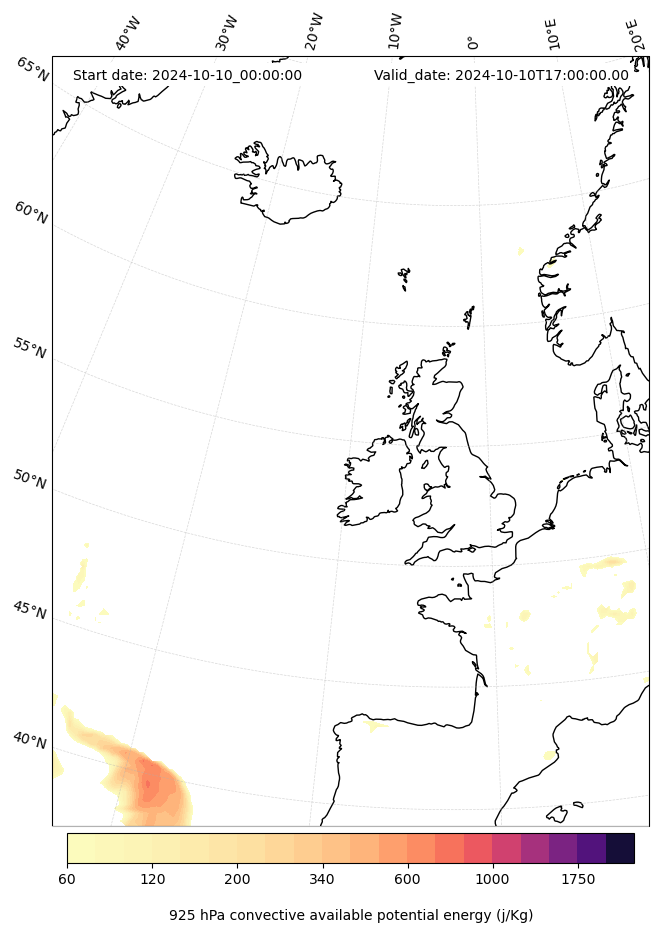 - Maximum CAPE (J/Kg)