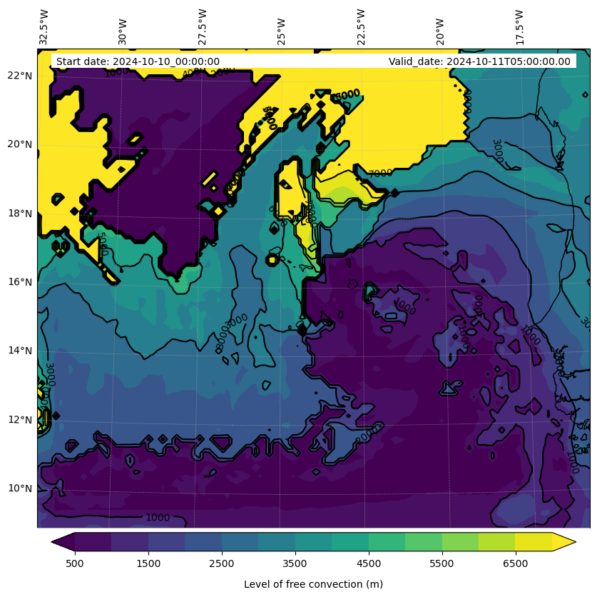 - Level of free convection (m)