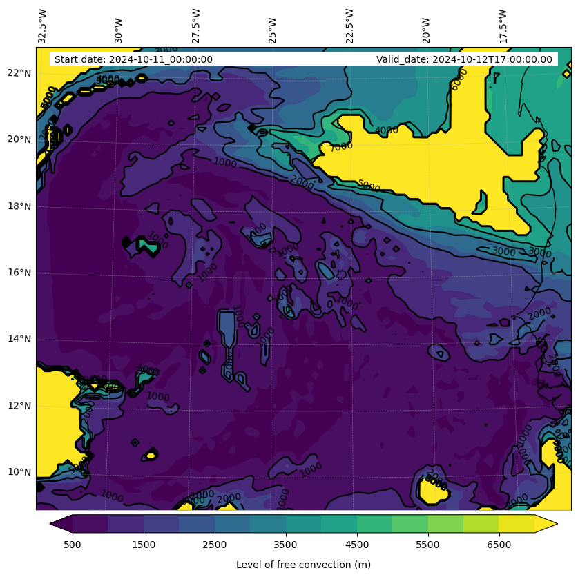 - Level of free convection (m)