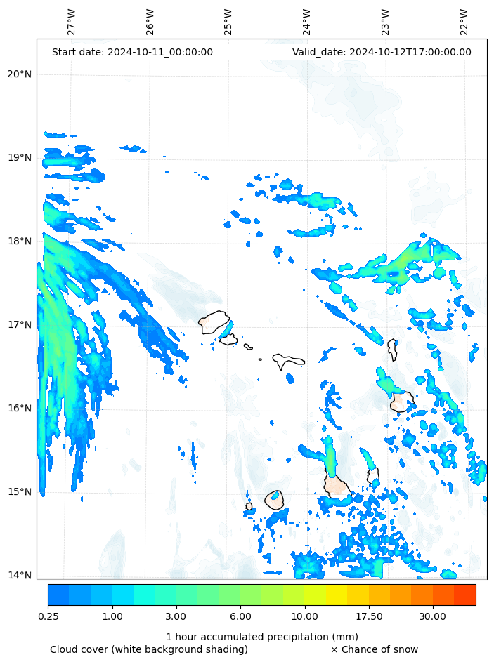 - Snow mixing ratio (g kg¯¹)