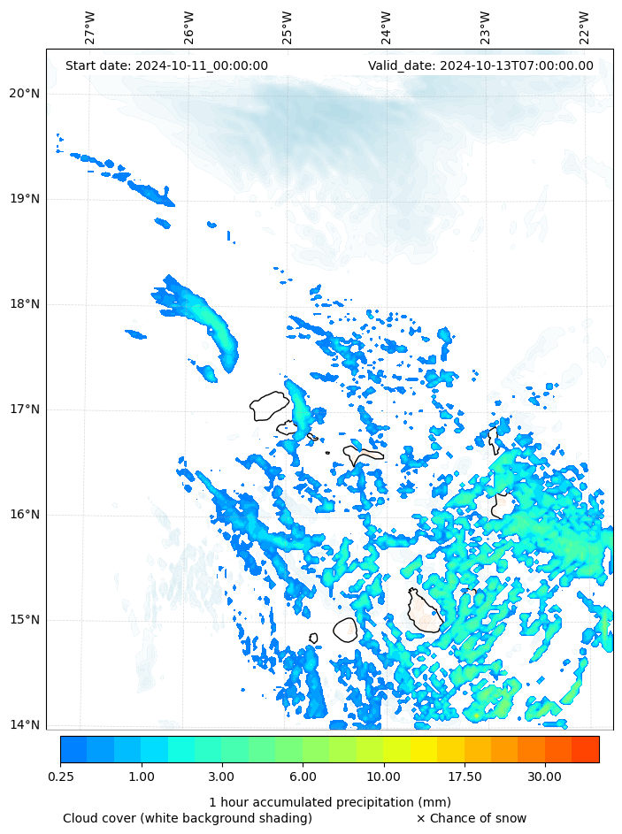 - Snow mixing ratio (g kg¯¹)