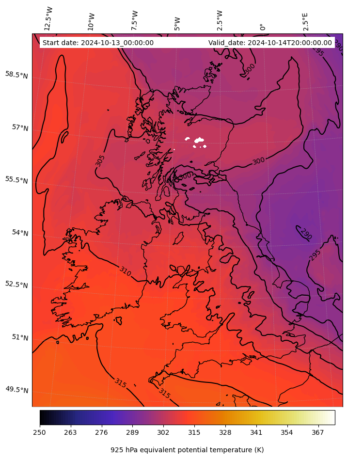 - Equivalent Potential Temperature (K)