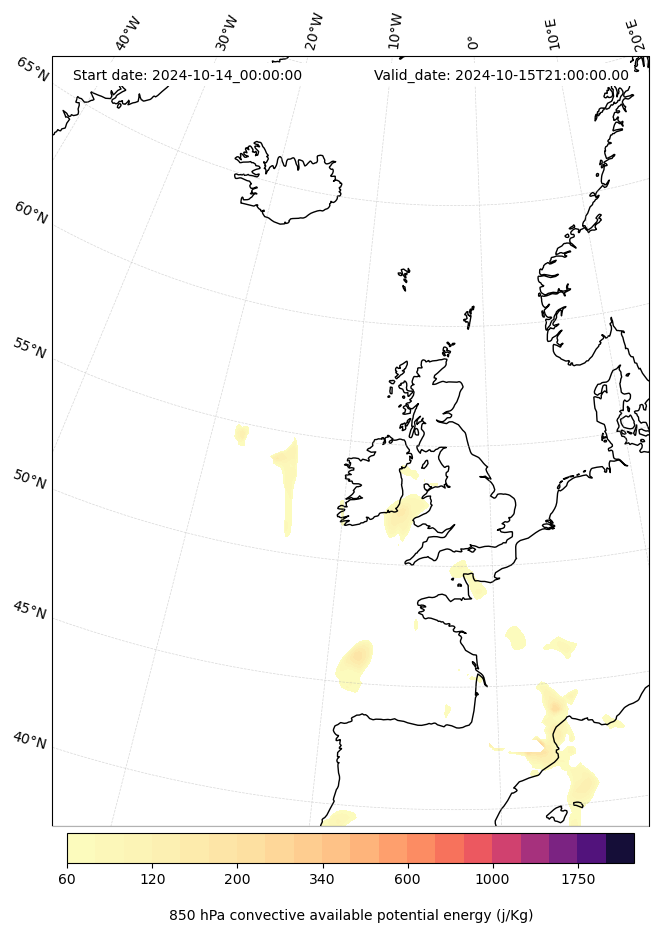 - Maximum CAPE (J/Kg)