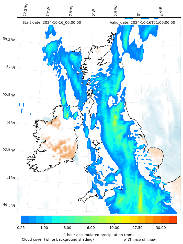 - Snow mixing ratio (g kg¯¹)