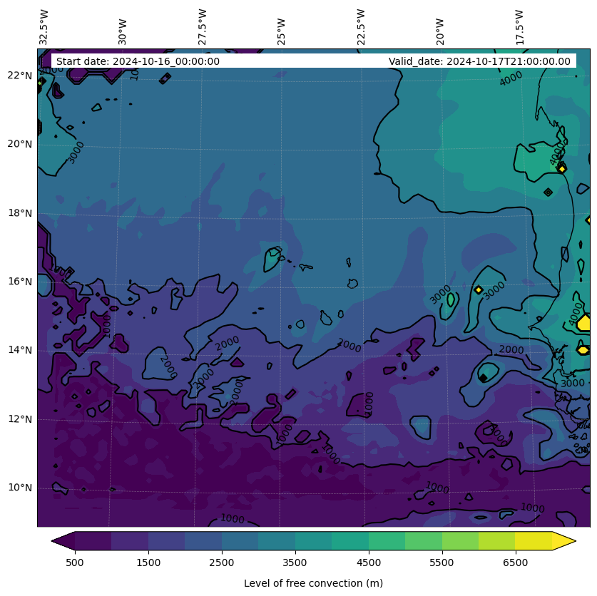 - Level of free convection (m)