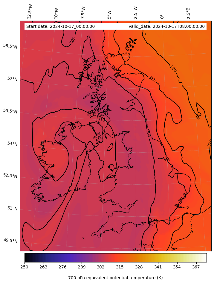 - Equivalent Potential Temperature (K)