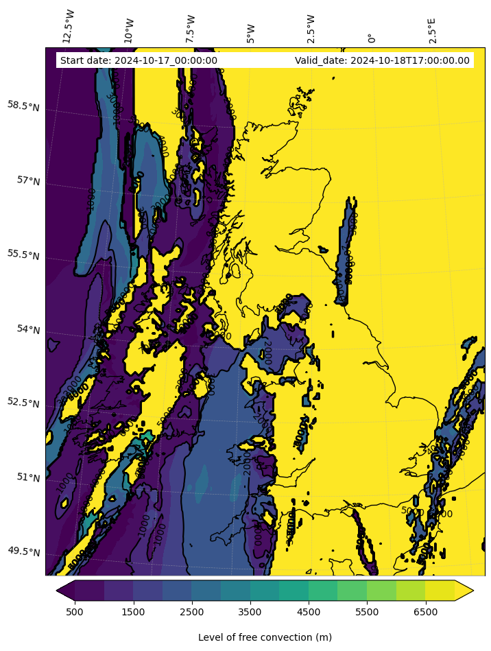 - Level of free convection (m)