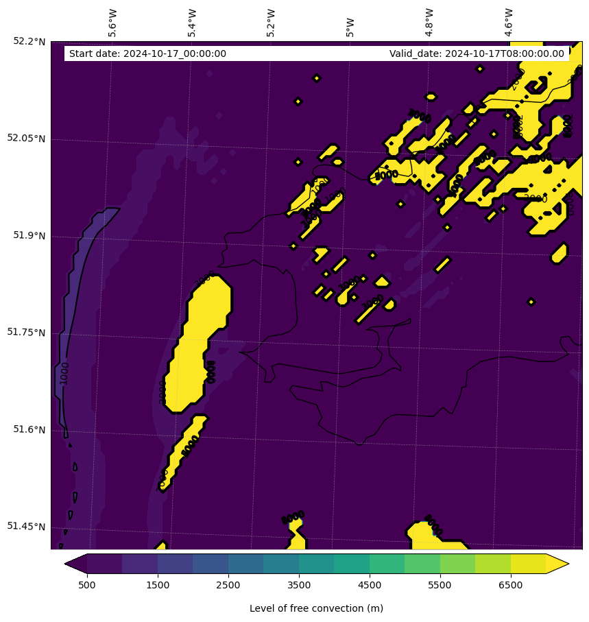 - Level of free convection (m)