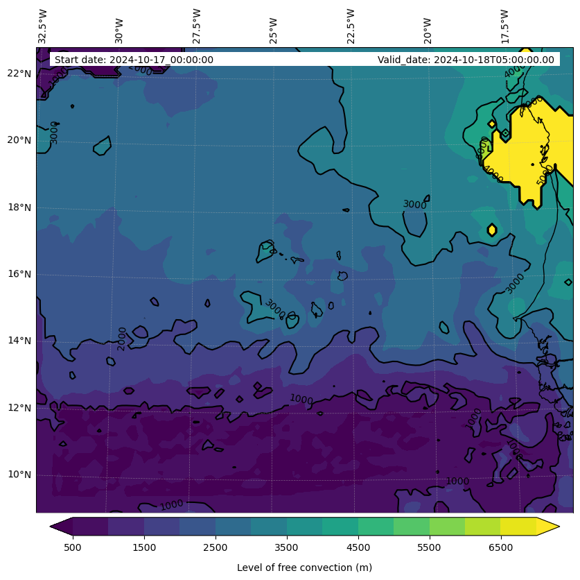 • Level of free convection (m)