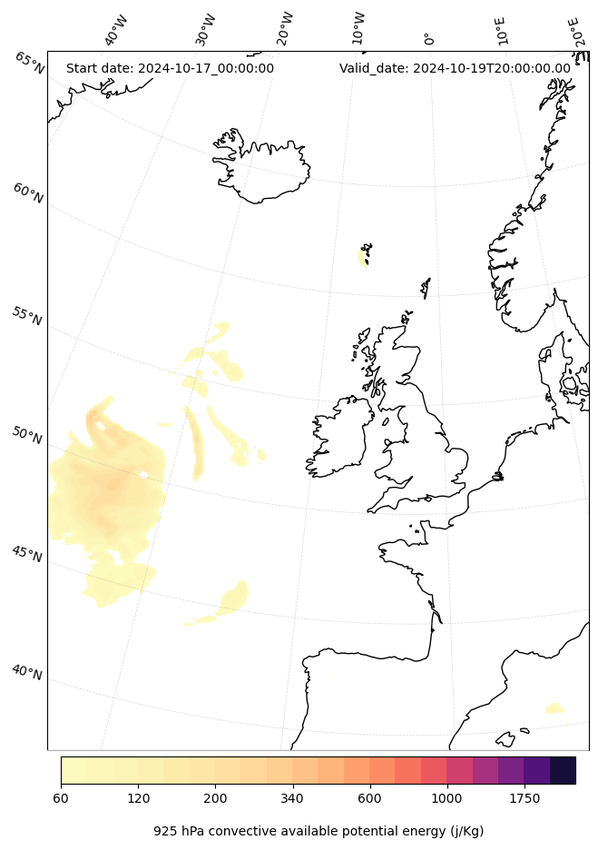 - Maximum CAPE (J/Kg)