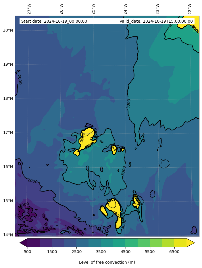 - Level of free convection (m)