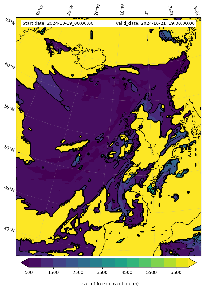 • Level of free convection (m)