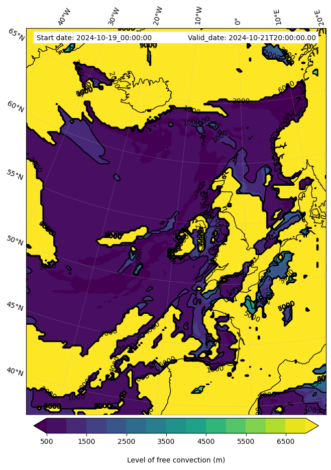 • Level of free convection (m)