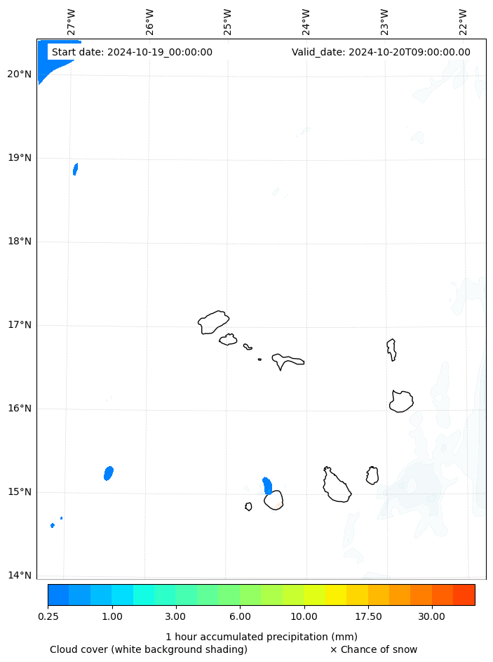 - Snow mixing ratio (g kg¯¹)
