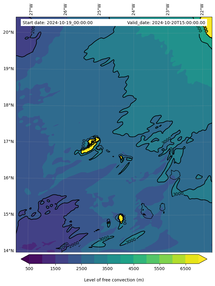- Level of free convection (m)