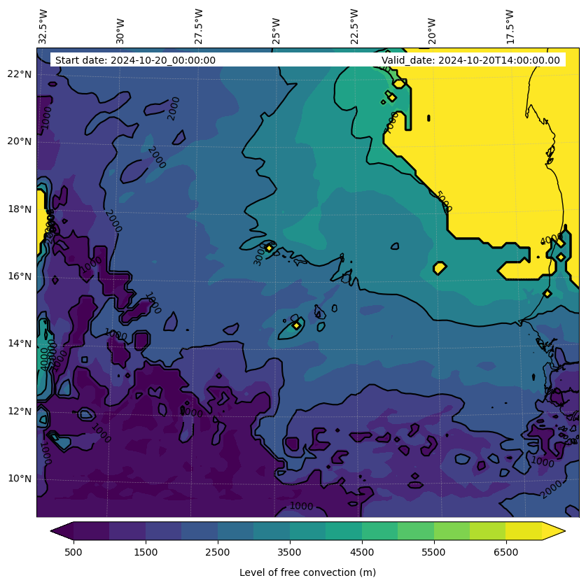 - Level of free convection (m)
