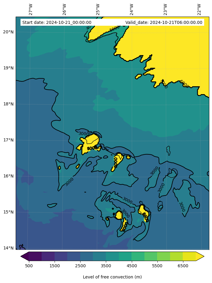 - Level of free convection (m)