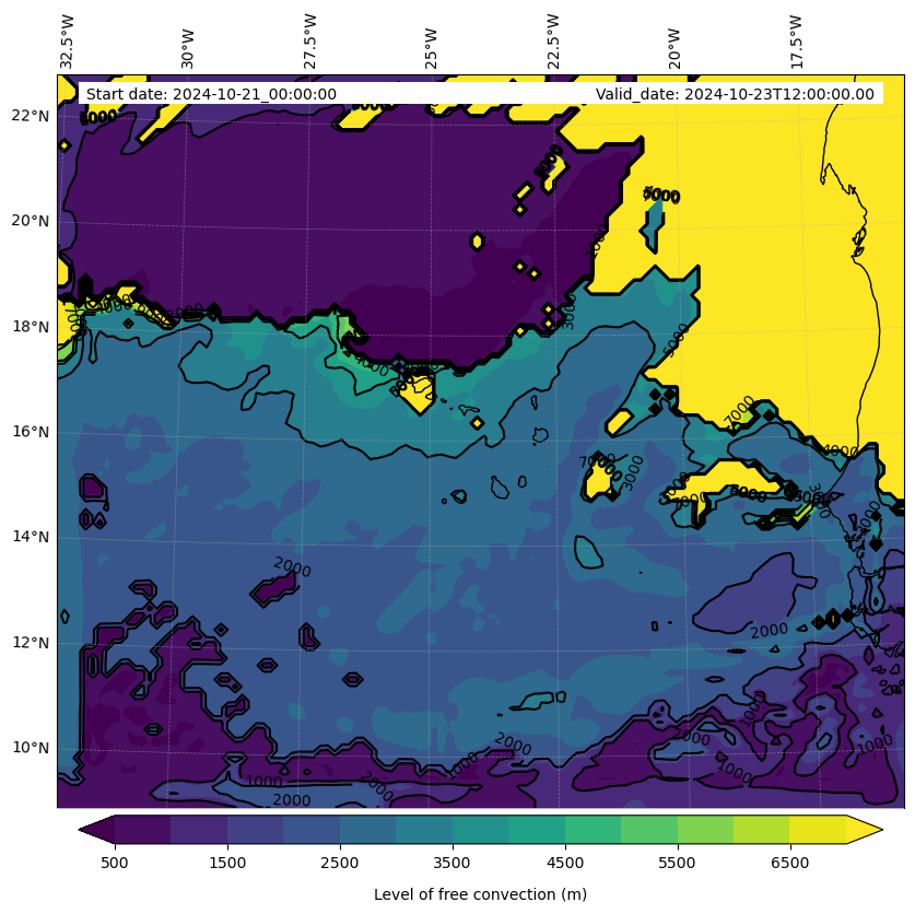 - Level of free convection (m)