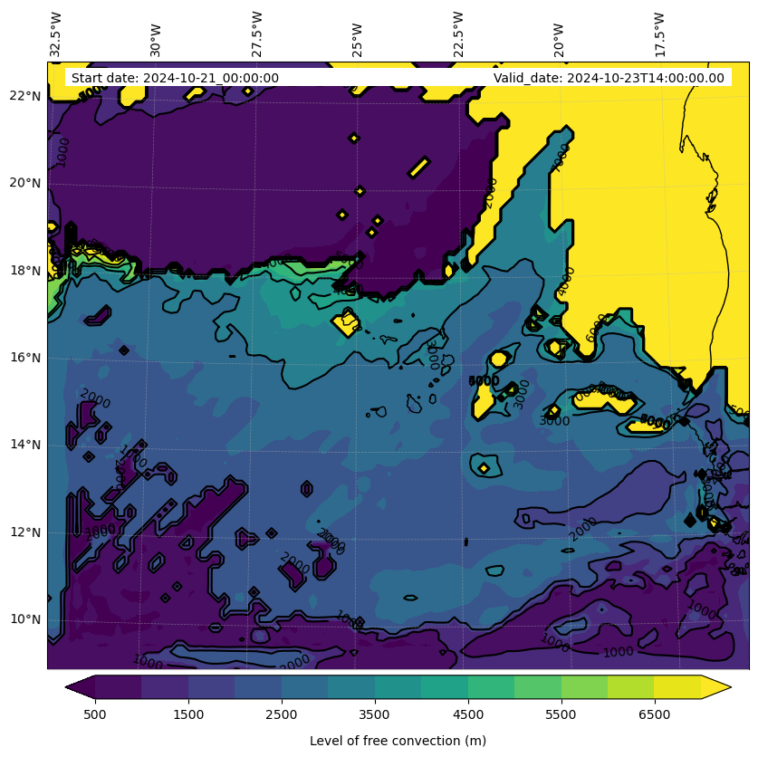 - Level of free convection (m)