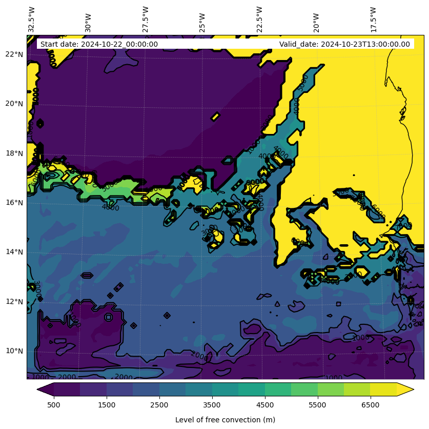 - Level of free convection (m)