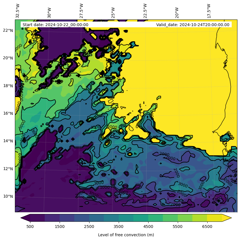 - Level of free convection (m)
