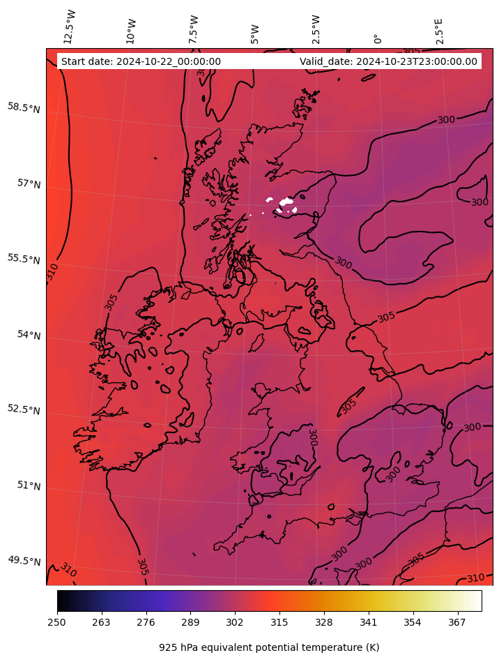 - Equivalent Potential Temperature (K)