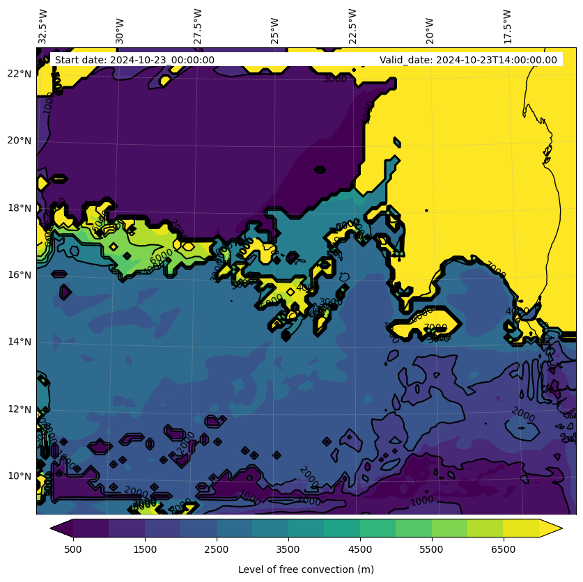 • Level of free convection (m)